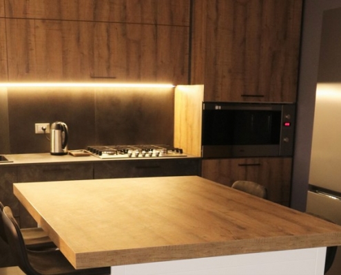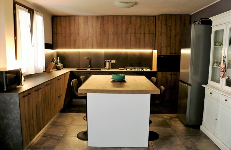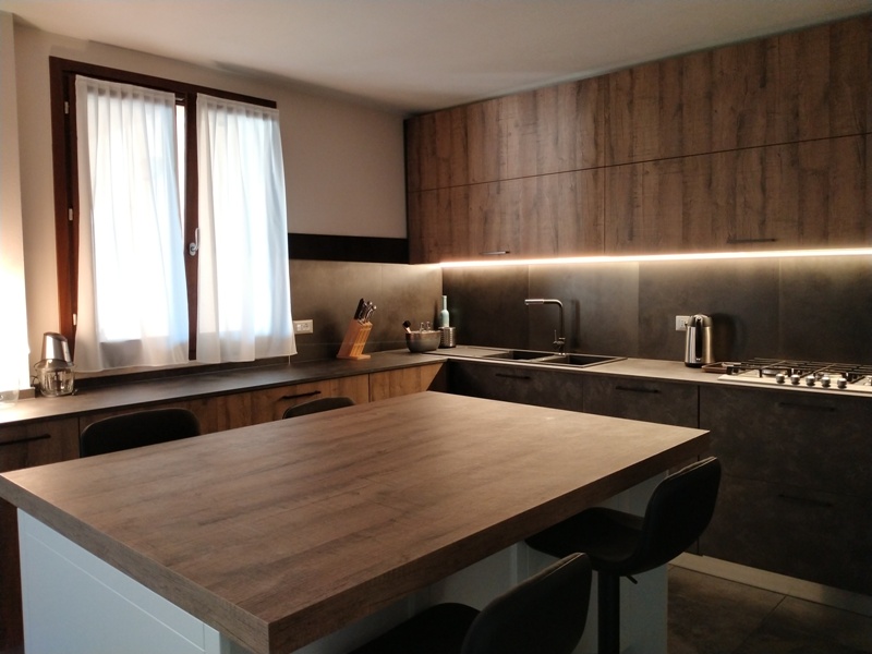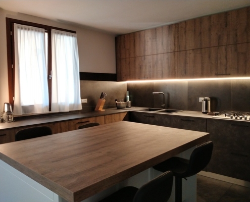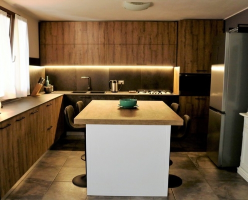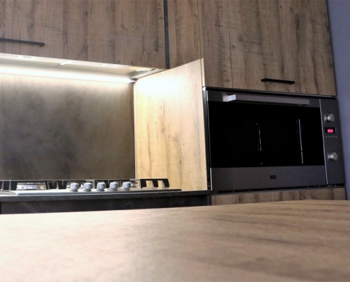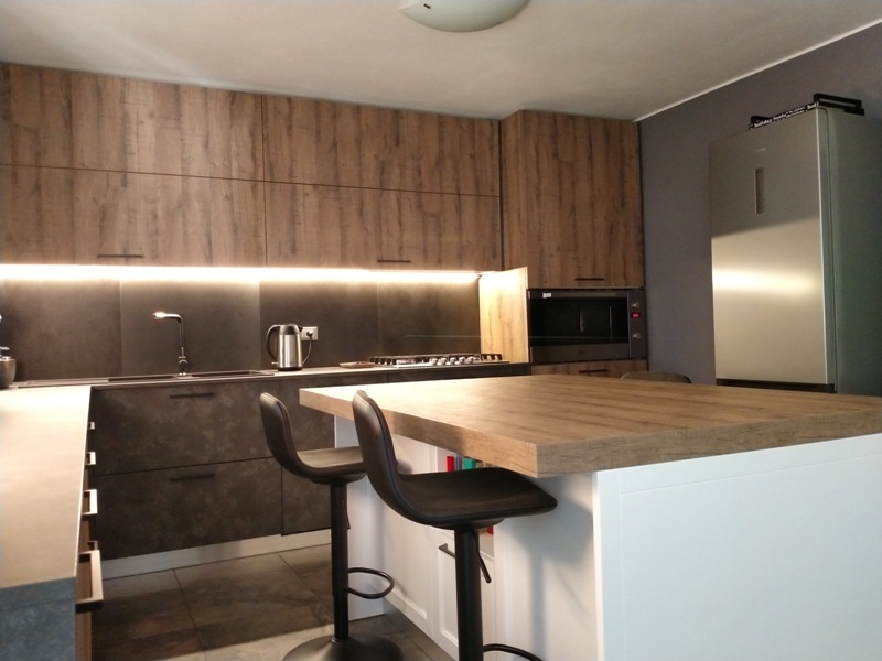 ante pensili e colonna in nobilato effetto legno
