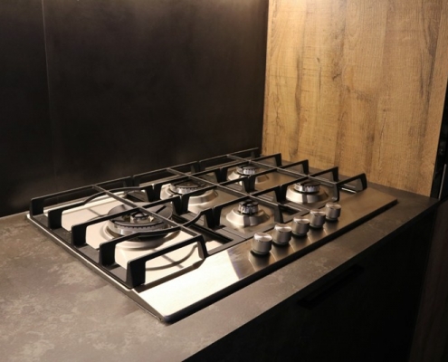 schienale in gres porcellanato in analogia al piano top